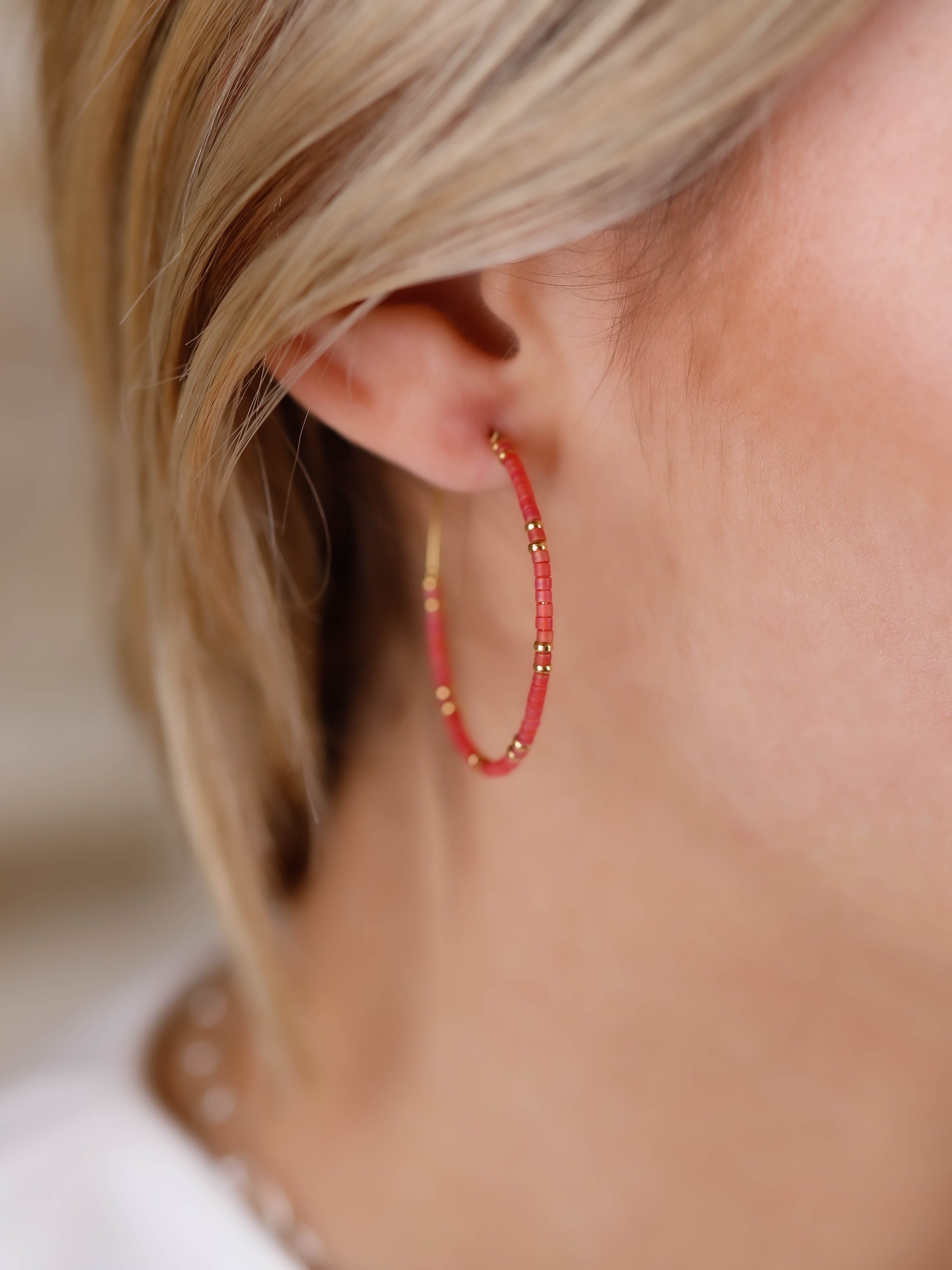 Ces boucles d’oreilles en acier inoxydable sont un véritable concentré de bonne humeur ! Composées de petites perles multicolores, elles apportent une touche fraîche, joyeuse et bohème à tous vos looks. Disponibles en plusieurs variations de couleurs, elles sont parfaites pour l’été, les festivals, les vacances ou simplement pour mettre du peps dans votre quotidien. Légères, fun et pleines de charme, elles se marient facilement avec d’autres bijoux pour un effet coloré tendance ou un style bohème chic.