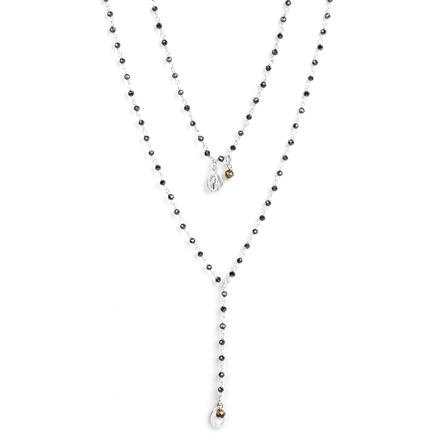 Ce collier femme est fabriqué avec une chaîne perlée en hématite, une pierre naturelle qui regorge de propriétés uniques qui apportent bien-être au corps et à l'esprit de son porteur. L'hématite est une pierre d'ancrage et de protection. Elle améliore la volonté, la joie de vivre ainsi que l'énergie. Elle consolide aussi la mémoire et les pensées. Ainsi, porter cette pierre naturelle au quotidien apporte du bien-être.