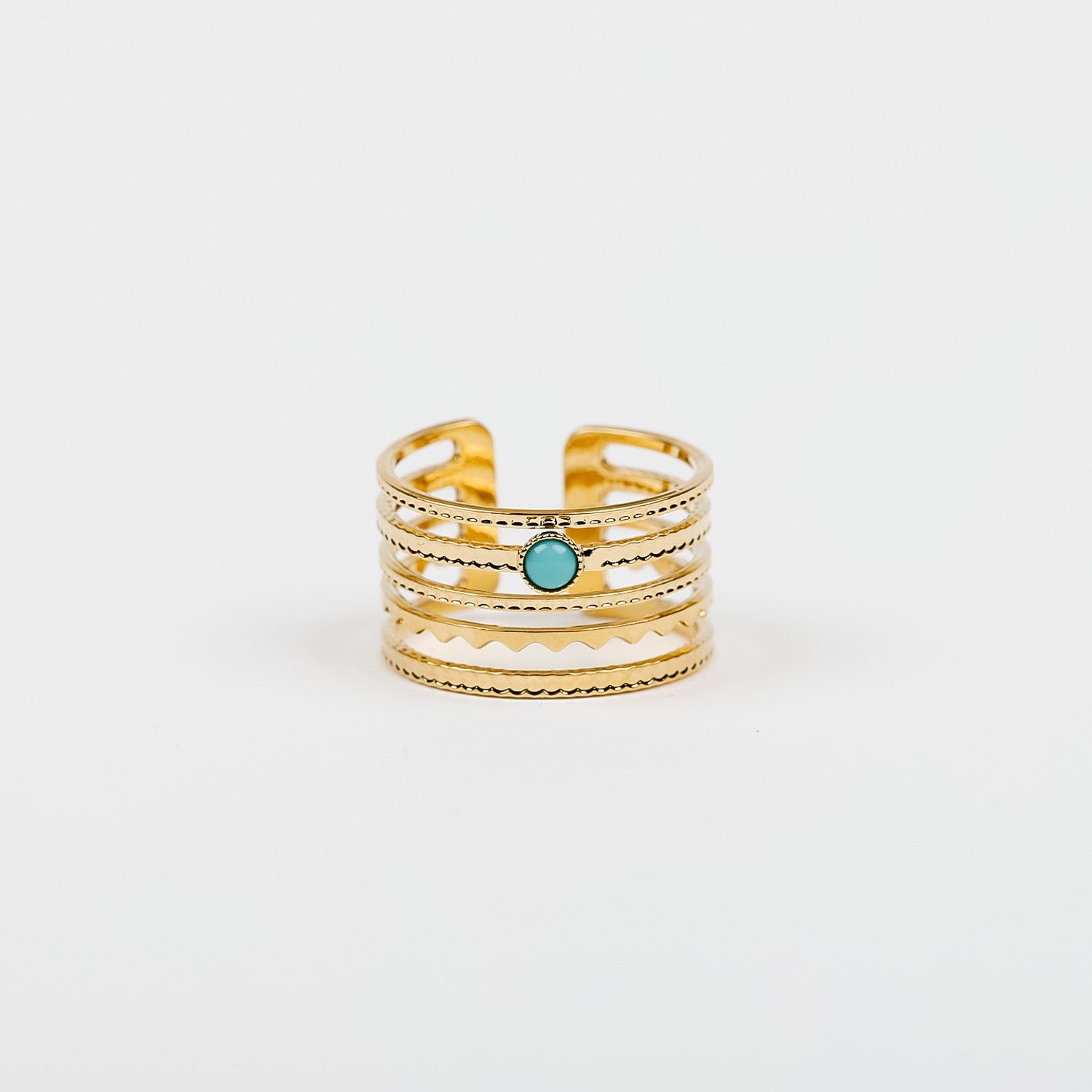 Sublimez vos mains avec cette bague plaqué or Aya et son design multirangs. Fabriquée en plaqué or, elle est composée d'une subtile pierre de verre colorée qui égayera votre tenue avec discrétion.