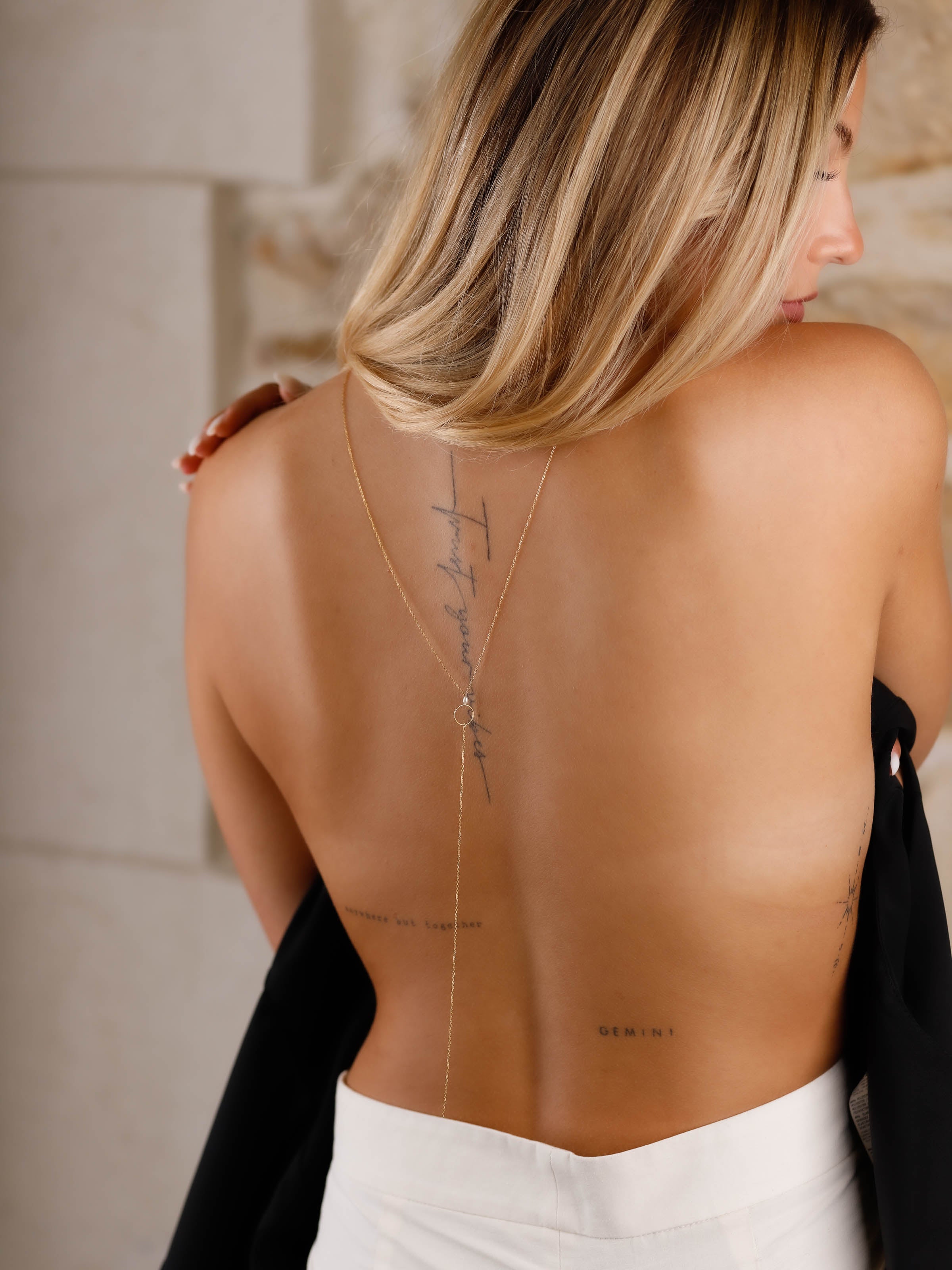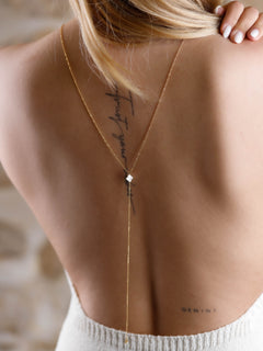 Sublimez votre dos avec ce superbe collier de dos en acier inoxydable. Plongez dans l'élégance avec notre collier de dos sautoir, orné d'un joli cercle et d'une perle.