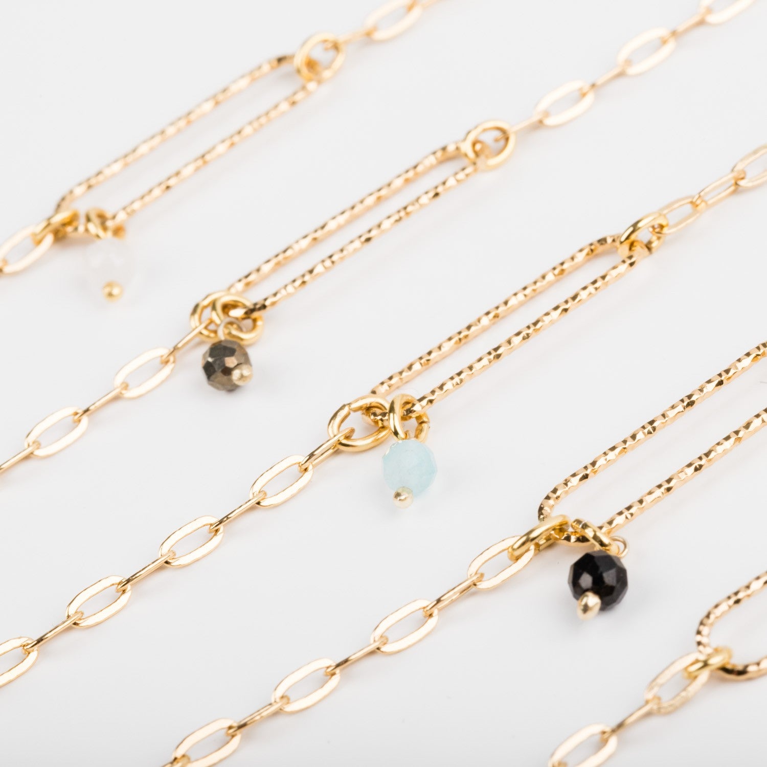 Craquez pour ce collier en plaqué or composé d'une véritable petite pierre d'agate blanche, orné d'un maillon à effet diamantée. Ce collier est un accessoire phare à avoir dans sa collection de bijoux.